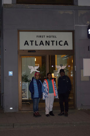 It was an overnight journey to get from Bodo to Alesund (Read JOURNEY SOUTHWARD). The Pent House in NO.7 NEDRE STRANDGATE was situated on the 3rd floor. We had booked it with Airbnb. It was quite comfortable with a big hall, open kitchen & dining, with its wide doors and windows showcasing the mountain views of the "SUNNMORE ALPS". One of the couples from the group was put up in FIRST HOTEL ATLANTICA , which was a 3 minute walk from this apartment. The apartment welcomed us with fresh GINGER BISCUITS , which was liberally filled in a big jar & visibly placed in the kitchen. We did justice to the entire jar of biscuits along with a mixed orange-mango juice, bought from the super market BUNNPRIS on the ground floor of the apartment building. Bunnpris was a massive super market that made it very convenient for our daily grocery purchase.