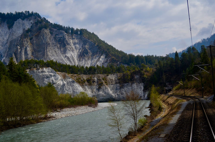 The Chur bus station was on top of its railway station. Half hour's time was more than enough to just graze through this area. Soon, we spotted the GLACIER EXPRESS train arriving from St.Moritz. It was due for departure at 11 am. We were definitely excited. We boarded the train and took our seats which were reserved in advance. We were aware that the journey from Chur to Zermatt would last 6 hours. We had nothing to do but stare out of the massive windows and enjoy all what we witness. The journey began as scheduled. The Scenic wonders that moved past our windows at a leisurely pace, were just splendid. The stunning views of the Rhine gorge, also referred to as THE SWISS CANYON, slowly and steadily uncovered itself in front of us.