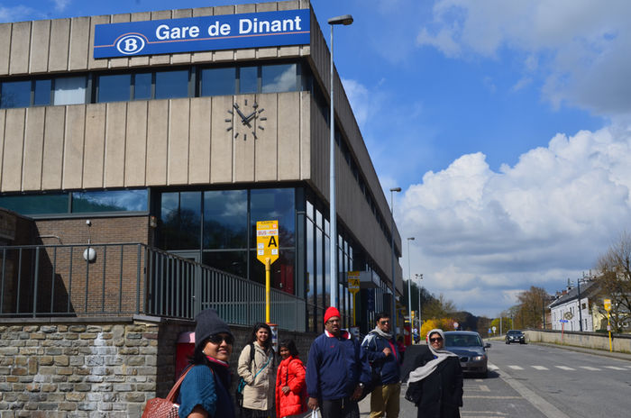 Dinant, meaning "Divine Valley", a city with rich history since the neolithic times, lies to the south of Brussels, in the province of NAMUR. It lies above river MEUSE and is the birth place of the renowned Sir Adolph Sax, inventor of the Saxophone. A "one of a kind" blackish , bulb domed, sleek church, sitting amidst colourfully lined up European style buildings on its either side, fitting well within the backdrop of a mountain, that houses a fortress from its peak, running the length of its slope and this scene in entirety, reflecting itself on the River running below is the standard picture that shoots up at the mention of "Dinant". This unique picture picked our interest and hence got added into our itinerary.