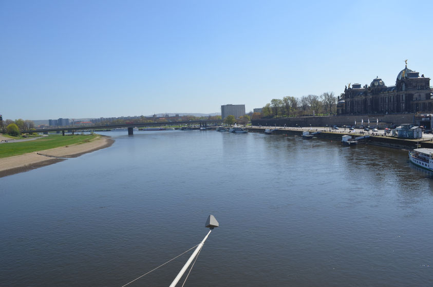 RIVER ELBE AND NEUSTADT : Via Park Platz, we walked a bridge over river ELBE and got to NEUSTADT ( New town). After a short walk around the place, we took a train from the Neustadt station to reach Dresden Main station (Hauptbahnof). After lunch on one of the station benches, we boarded our train to Praha (Prague).