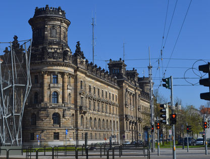RATHAUS DRESDEN : Taking a quick walk around the main road and admiring many uniquely built structures, we noticed that the city was a great fusion of modern and ancient. While it enjoys great infrastructure it also basks in ancient glory of monuments and art covering every nook and corner. Within 5 min of our walk we reached the RATHAUS DRESDEN or the DRESDEN TOWNHALL. The town hall hosts the administrative affairs of this self-governed city. We took a walk on the Rathaus platz. The impressive golden gates with its pair of green lions seated outside it is a must capture. Tram lines criss-crossed the city comfortably and unfortunately we didn’t get to ride any of it here, like we usually do.