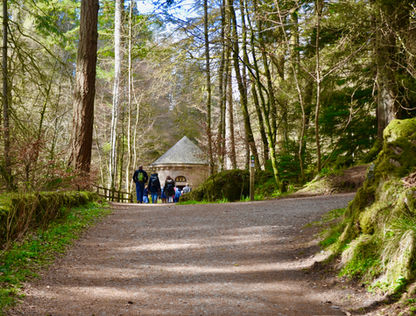 The forest grew thicker and beautiful. We soon reached the HERMITAGE, a special stretch of the Perthshire forest, that was designed purely for pleasure, in the 18th Century by the Dukes of Atholl.