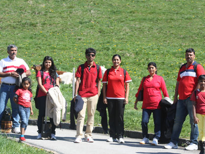 Barrels and barrels of milk are processed here each day. We were guided to the "store room" which stocked tons of variety cheese, neatly labelled and laid out in the shelf racks provided. These racks nearly reached the roof. The tour was good exposure for the kids. This tour had a yummy ending too. We visited the factory restaurant. Some vegetarian eats with cheese & a bag of small potatoes was the order we placed. We were really surprised at the quantity of cheese provided. On our table, was a little fire kindled, on which was placed a whole pot of melting cheese. The bag of herb infused baby potatoes were heavenly. The other eats were very yummy too. Some members of the group couldn't stand the strong smell of cheese . Outside the restaurant was a cut out of a traditionally dressed Swiss couple, where we could place our heads to fit into their bodies, for a picture. I am unable to trace many pictures of our experiences at both the factories, at this point in time. I will surely update the gallery, if and when I find them.