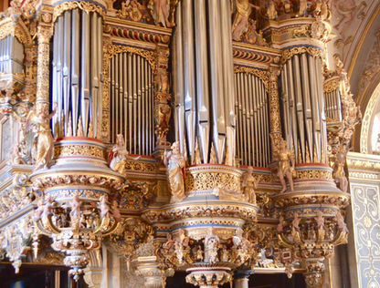 At the end of the castle tour, we stopped by a few benches in the open space near the castle's rear gate. We had a tough time battling the strong winds to have a bite of our sumptuous home-made meal. We finally succeeded. A few of us ventured into the much raved about castle gardens. The rest of them were happy on the benches, relaxing. The Baroque Gardens, follow the renaissance style of art. There are of two parts of the Garden. One shaped to perfection, maintaining a certain symmetry, lying on the banks of Castle lake, overlooking the rear side of the massive castle structure. The other lying right behind this area , on a sloping surface, landscaped to give a unique look. In-between the two is an area designed to hold a cascading fountain, flanked by few white sculptures.