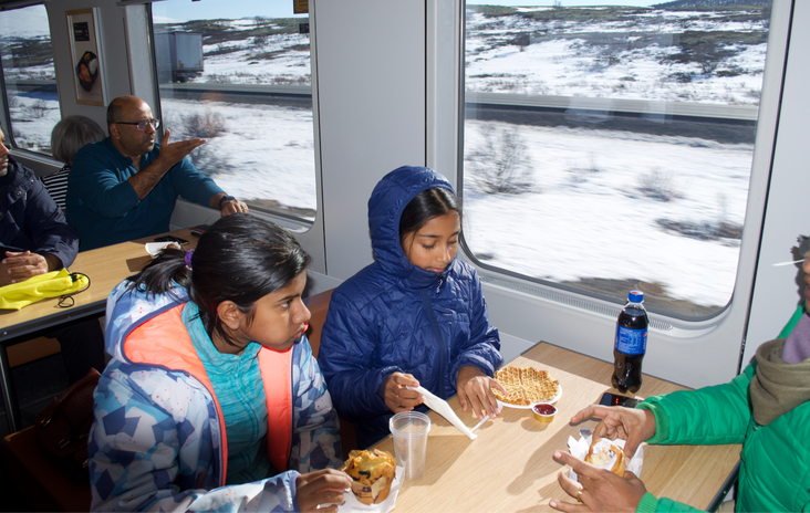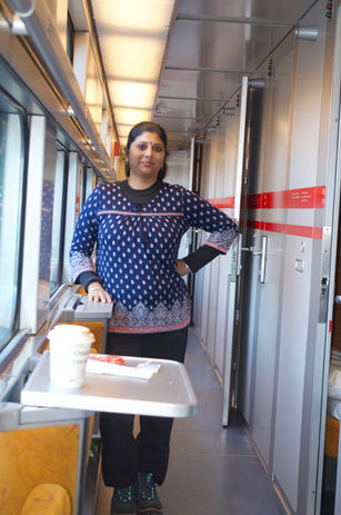 One of the most sophisticated journeys we've ever had, this train was comfort re-defined. The tickets for this leg had been booked online too, well in advance. Large windows and seats greeted us. The pantry car of was like a mini restaurant with big windows and lots of benches, chairs and tables. We were free to hang around and have a bite of our choice from the many goodies available there. We didn't miss any scenery all along.