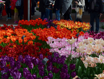 Keukenhof is a world renowned botanical garden situated in the town of Lisse, to the south-west of Amsterdam city. History dates back to the 13th Century when this area served as a hunting terrain to the Royals of the Castle of Teylingen. Later the Countess decided that a few fruits & vegetables be grown in a part of this land , to serve the Royal Kitchen. The ground soon turned into a ' Kitchen Garden ' , giving Keukenhof its name. (The word 'Keukenhof' in Dutch, translates to 'Kitchen Garden' ) It continued to remain so till the Baron & Baroness, who occupied the Castle during the 19th Century, showed interest in renovating the area into a Castle garden, after being impressed by an Architect's work on the Vondelpark in Amsterdam. The restructuring that followed, laid the foundation of the garden, that remains till date. The perfectly growing flowers, around the same months each season, prompted the workers in the gardens to showcase this beauty to the world. Today, the park covers 32 hectares approximately. Around 7 million flower bulbs are annually planted here. Primarily consisting of tulips, there are also other varieties like daffodils, lilies & carnations to name a few. With a changing design each season, the Gardens are open to visitors during spring, lasting for about 3 months a year, usually from mid March to Mid May. Recently, the entrance was renovated. It now wears a new look.