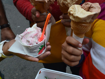 On the opposite side, we spotted people climbing on a few beautifully shaped rocks. The kids decided to climb it too. The rock was at a height at the foot of the bright buildings . A few steep steps were cut into the rock, right from the top, that led to the water. The kids enjoyed their climb up and down. We saw a few fishermen in their boat, trying a catch a bite. Not sure if they were successful. We then walked back the alleys into the village. We treated ourselves to some ice-cream and fresh strawberries. After a while it was time to return through the tunnel to the station. We caught our train on time to get to La Spezia and further to Florence. We reached our accommodation in Florence and called it a day.