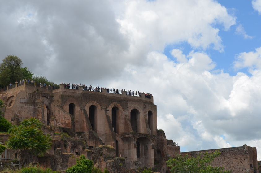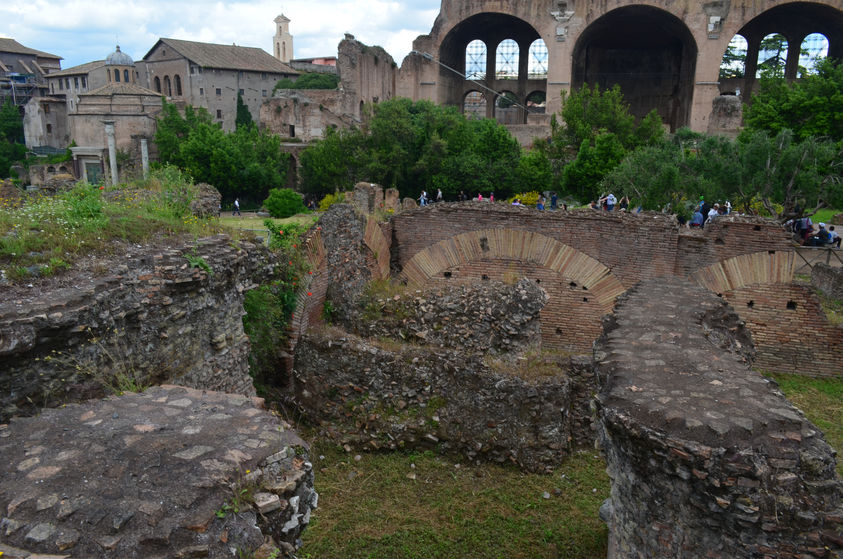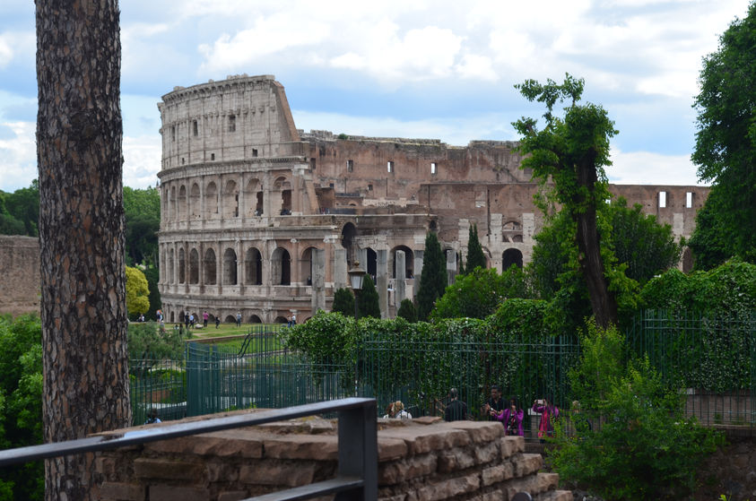 Our ears were filled with many more stories which our minds stood visualising. Our tour soon ended. We walked around the ground floor of the amphitheatre, still mesmerised by the erstwhile stories. The slots provided for wild animals right below the centre stage sent shivers down our spine. Parts of the colosseum are today utilised as a museum displaying items used thousands of years ago. Walking past the greenery in front of the Colosseum, we reached our next point of interest - THE ROMAN FORUM / PALENTINE HILL.
