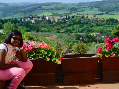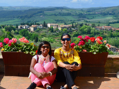 The fortified hill town of SAN GIMIGNANO ( pronounced San jimmy gna no) occupies a small area in the central Tuscan region, half-way between FLORENCE & SIENNA. Its 13th century fort walls promise unparalleled views of the Tuscan valleys that surround it. The erstwhile CASTLE SILVIA was renamed SAN GIMIGNANO, after 'Saint Geminianus', who defended this fort town from Atilla the Hun in the 5th Century. The town is best known for its watch towers, few of which were built initially for secret viewing, supporting its military. Historical facts prove that few houses were later built in tower format, referred to as CASSA TORRE, with their narrow windows facilitating nothing but exchange of air. The 13th & 14th century witnessed hierarchical family feuds where each family built towers attached to their residences, in increasing heights, to compete with the other. In a few passing centuries the number of towers grew to 72, prestigiously defining the power and wealth of the Patrician family. The town was used as a stopover by on foot pilgrims, who visited ROME or VATICAN. Later, the Black Plague attacked the town, causing majority of its settlements to gradually move out. Over the passing years, only 14 of these towers survived, as seen today. The town has never been subject to war destruction. It is currently a well recognised UNESCO HERITAGE site.