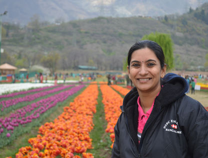 A visit to Srinagar is never complete without a visit to the Tulip Gardens, especially when you land there during the season. By day 3, I was up and running and my health conditions improved in a great way. I can never forget how encouraging Nasir's father was. His words are still ringing in my head " with this kind of fresh air she will soon be more than better. Once this fresh oxygen fills her lungs everything will vanish" and so it did !! By the evening of day 2 , I felt good enough to travel by car to the tulip Gardens. Labelled as the largest tulip Garden in Asia, the Indira Gandhi memorial tulip Garden spreads over thirty hectares of land. It is situated on the foothills of a mountain range close to Dal lake. Apart from tulips, there are also other varieties of flowers here.