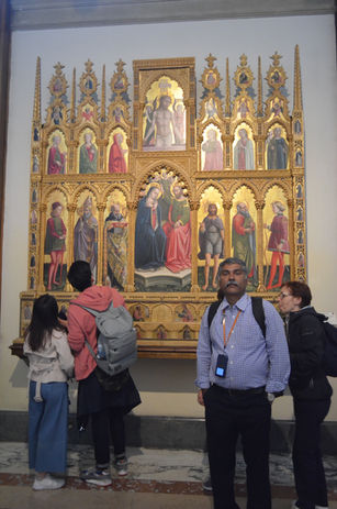 It was actually quite funny. There was hardly anyone looking at the floor while moving forward. The entire crowd had their heads up staring at the ceiling of about 12000 odd square feet. This is regarded as Michelangelo's best work of art. The creation, however, took a toll on his health. It was his toughest four years, where he literally stood on a wooden stool bending his neck backward to make his paintings on the ceiling, with the residue occasionally falling into his eye and leading to a permanent damage of his vision, while he also strained his back and neck. It is said that he never really recovered from this condition. Slowly and steadily we reached the inner sanctum of the Chapel