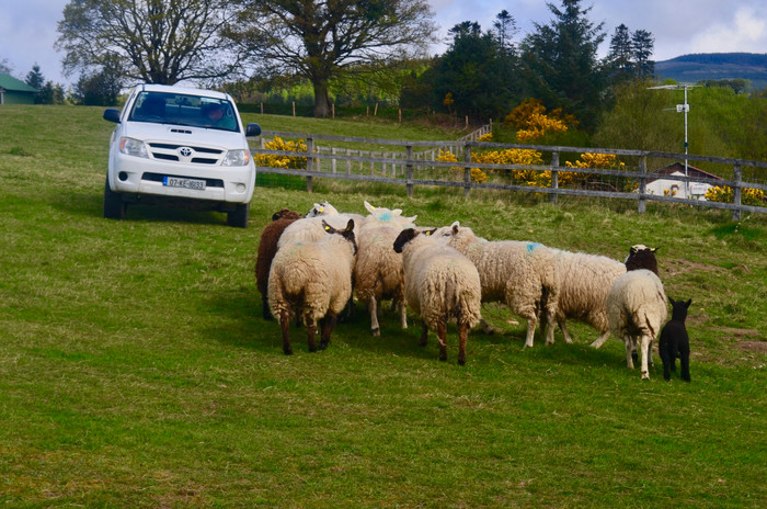 Gliding through gorgeous landscapes, strewn with yellow flowers, high and low with the guide sharing loads of interesting facts was how the tour progressed. The yellow flora were the GORSE flowers, also referred to as FURZE. They are also known by a couple of other names. They bloom throughout the year and their petals are used in making a special wine, due to their edible nature. Earlier, they were used in production of Irish Whisky to provide it the required golden colour, apart from adding a mild almond flavour to it. With loads of other such stories, time flew past. In an hour's time, we reached the "ANNAMOE FARMS". We were welcomed at the gate of the farm by a SHEEP DOG. The surroundings kept us in awe and our cameras got busy. The guide had already informed us of the attraction here. The farm hosted us that morning, to witness a demo of their favourite sheep dog in action.